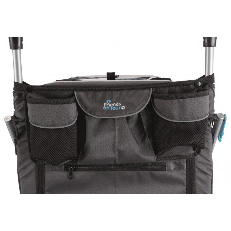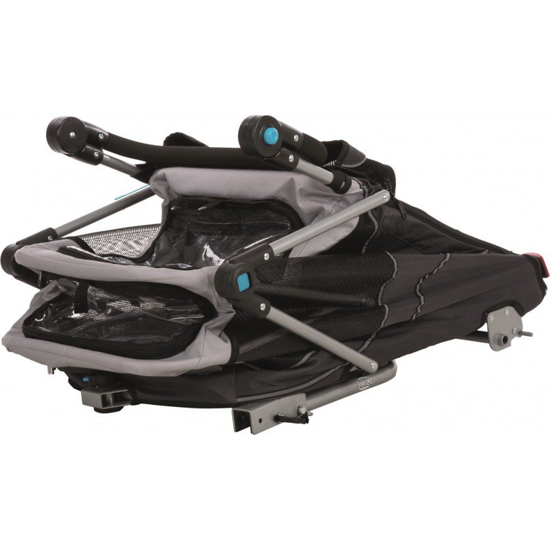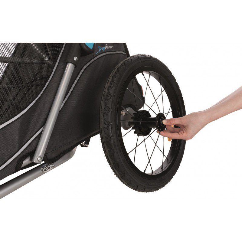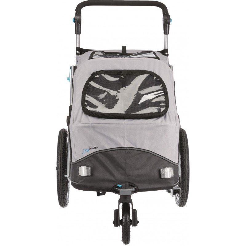 Szybko składana przyczepka rowerowa dla psa to świetne rozwiązanie dla psów podróżników. W kilka sekund można złożyć i rozłożyć produkt, dzięki systemowi quick-fold. Również kółka przyczepki można błyskawicznie zdemontować aby produkt zajmował mniej miejsca. Produkt posiada górne i przednie wkładki siatkowe, które można zamknąć. Dzięki temu będziemy mieli osłonę przeciwdeszczową. Drzwi do przyczepki są na jej tyle, są przestronne. Dzięki temu z łatwością umieścimy w niej swojego pupila. W środku przyczepki znajduje się poduszeczka z pianki elastycznej. Zapewni to komfortową podroż psa. Spód przyczepki jest wyjmowany, można go w łatwy sposób oczyścić, posiada antypoślizgowe pokrycie. W środku znajduje się również zintegrowany karabińczyk, za który możemy przypiąć psa. Przyczepka dla psa posiada również kieszenie na różnego rodzaju dokumenty lub przysmaki dla psa. Jest również uchwyt na kubek. Posiada dwustopniowy hamulec. Produkt ma odblaskowe elementy oraz chorągiewkę przez co jest doskonale widziany po zmroku. Produkt zawiera hak do przyczepy. Uchwyt można regulować na wysokość. Produkt zgodny z ustawa o ochronie zwierzat - §18 (AT