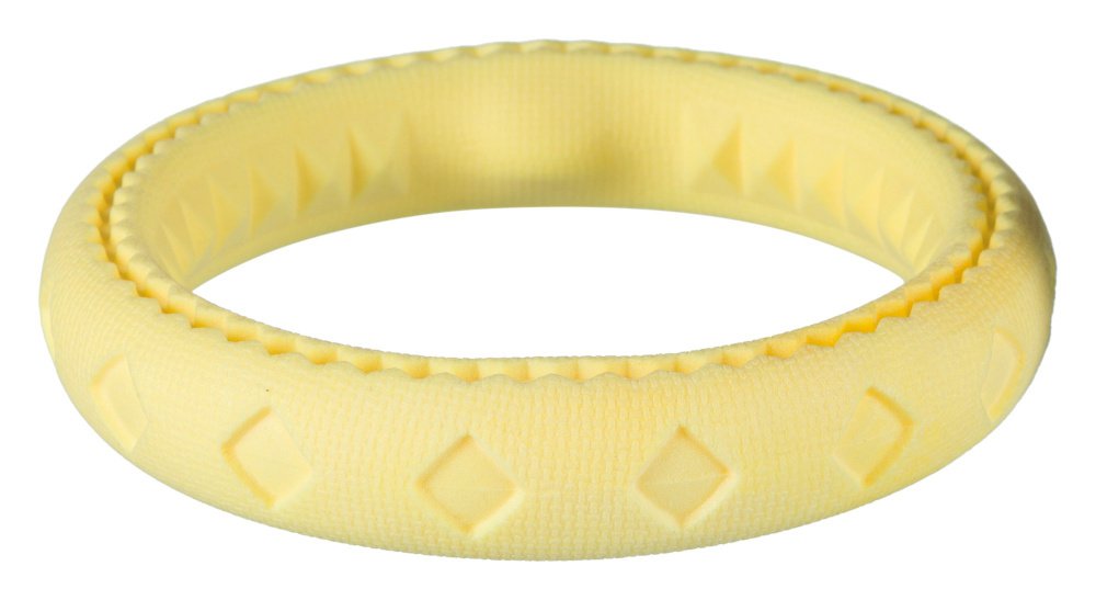 Trixie Ringo to niezwykle wytrzymała i odporna na uszkodzenia obręcz, która została wykonana z gumy termoplastycznej (TPR). Materiał ten zapewnia trwałość i elastyczność, co czyni z Trixie Ringo doskonałą zabawkę dla Twojego psa. Obręcz pływa na wodzie, co sprawia, że jest świetnym narzędziem do zabawy podczas spacerów nad jeziorem lub w parku. Trixie Ringo występuje w różnych kolorach, które są wysyłane losowo, dzięki czemu każda zabawka jest niepowtarzalna. Wybierz Trixie Ringo, aby zapewnić swojemu psu radość i aktywność fizyczną, jednocześnie dbając o trwałość i jakość zabawki.