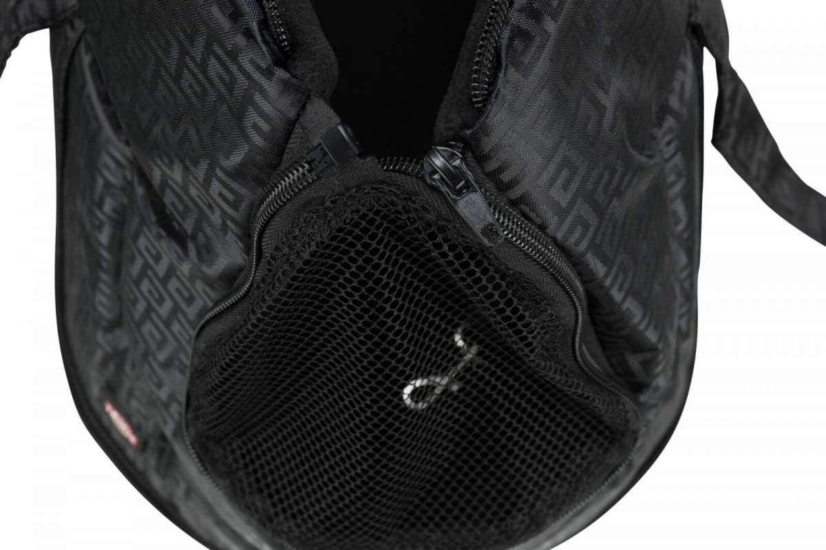 Torba jest otwierana od góry, co ułatwia wkładanie i wyciąganie zwierzęcia. Produkt jest również wyściełany, co zapewnia wygodę i ochronę podczas podróży. Wkładka z siateczki z suwakiem na przodzie umożliwia dodatkową wentylację i obserwację zwierzaka.