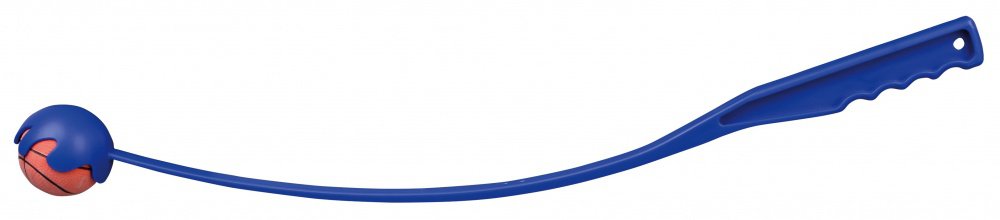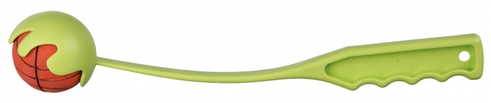 Zabawka dla psa w formie elastycznej wyrzutni z piłka tenisową. Umożliwia daleki wyrzut piłki bez konieczności użycia znacznej siły, a dzięki długiemu ramieniowi urządzenia, dodatkowo możemy podnieść piłkę z ziemi bez schylania się i brudzenia palców ziemią i śliną psa. Na końcu wyrzutni jest specjalnie wyprofilowane gniazdo, które trzyma piłkę, nawet jeśli zwrócimy ją ku ziemi. W chwili zamachu piłka opuszcza gniazdo. Świetna zabawa na duże przestrzenie. Piłka została wykonana z miękkiej gumy, wytrzymałej i odpornej na gryzienie. Jaskrawy kolor ułatwia jej odnalezienie w trawie.