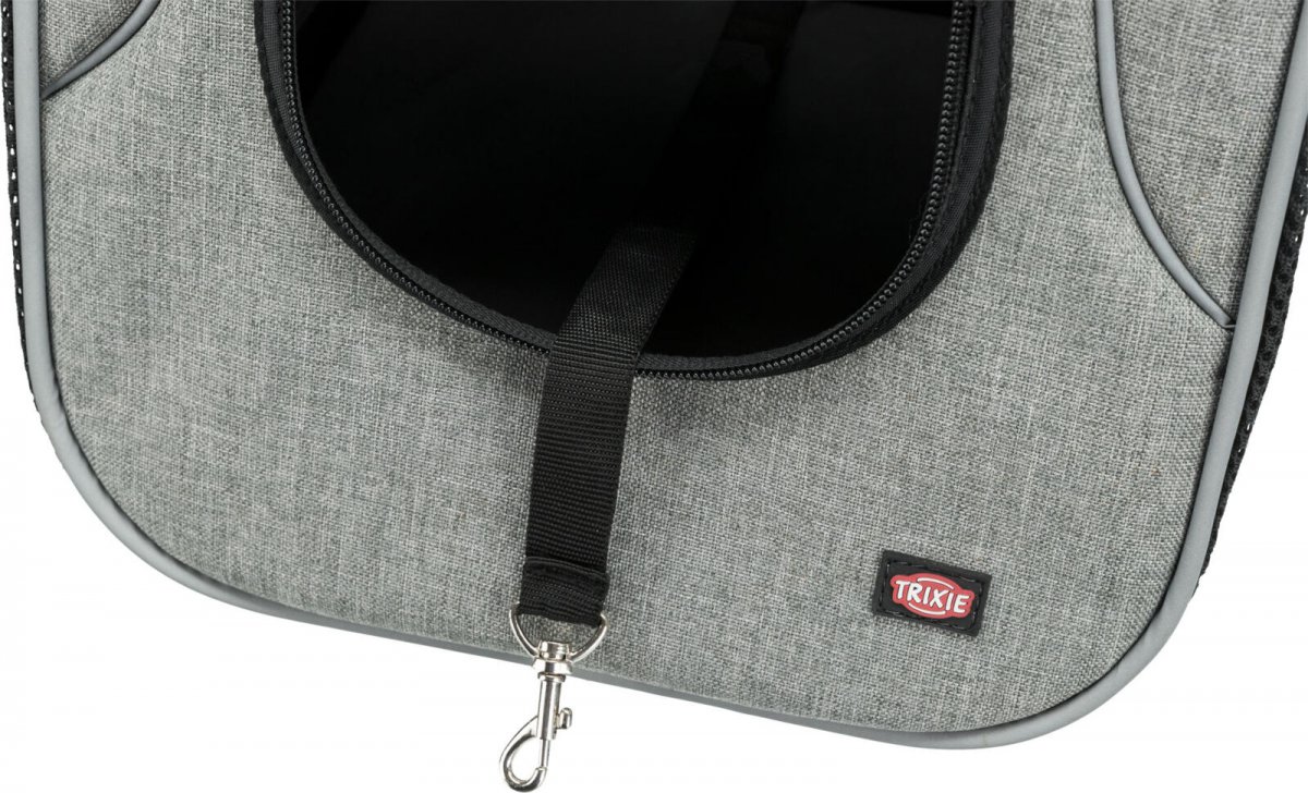 W nosidle znajduje się zintegrowana krótka smycz, która dodatkowo zabezpiecza zwierzę i zapewnia większe bezpieczeństwo. Elementy odblaskowe zwiększają widoczność nosidła w ciemności, zapewniając dodatkowe bezpieczeństwo podczas spacerów nocą.