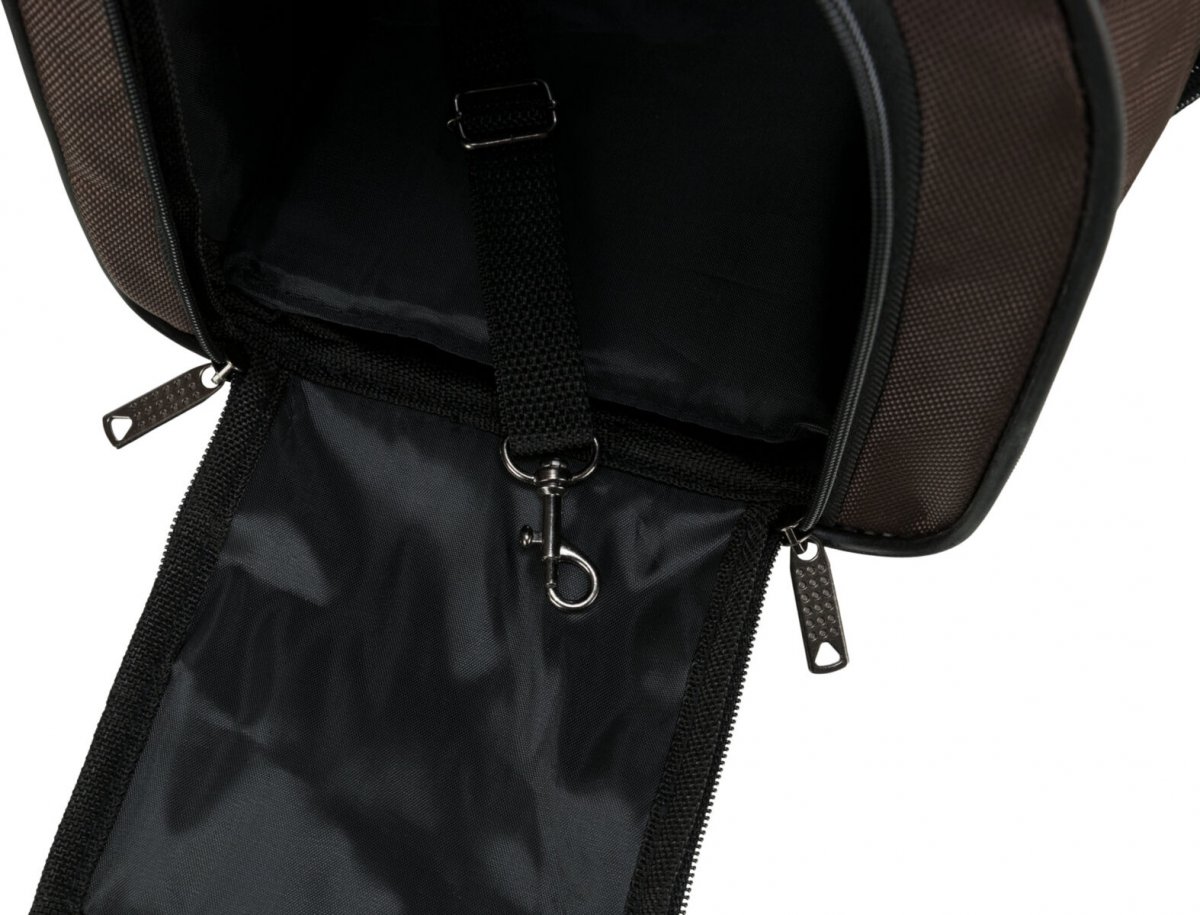 Wnętrze plecaka jest wyściełane, zapewniając komfort dla zwierzęcia podczas podróży. Wyściełana podstawa plecaka jest zdejmowana, co ułatwia jej czyszczenie i utrzymanie higieny.