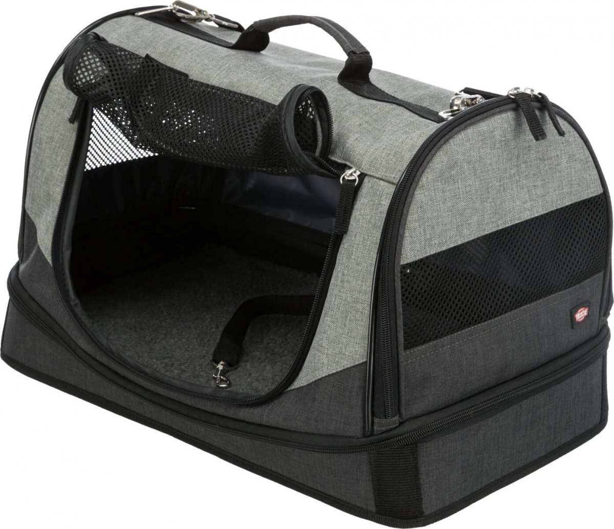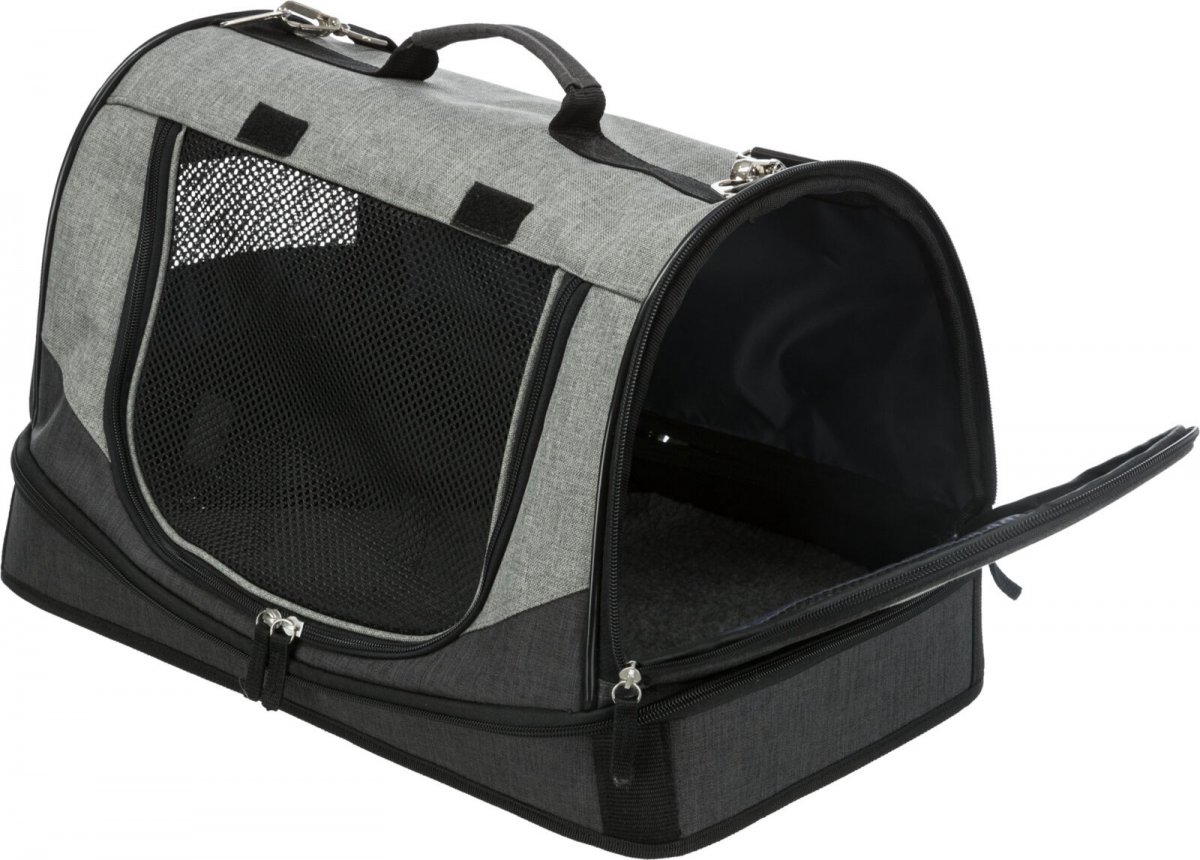 Trixie Torba transportowa "Holly" to idealna opcja dla właścicieli małych psów i kotów, którzy chcą zapewnić swojemu pupilowi wygodny transport oraz wygodne miejsce do spania w czasie podróży. Torba wykonana z trwałego poliestru z dodatkowymi kieszeniami na smakołyki i dokumenty. Może pełnić funkcję transporter lub łóżeczka, posiada zdejmowaną górną część i montowany pas na ramię. Zapewnia dobrą cyrkulację powietrza i posiada wygodny materacyk z imitacji owczej wełny dla dodatkowego komfortu.
