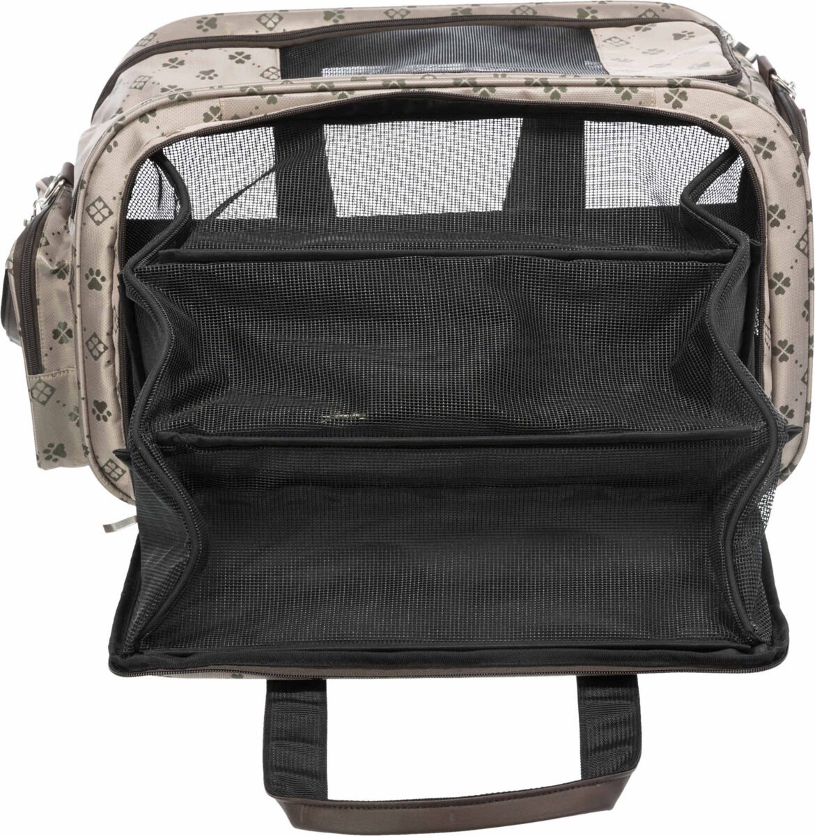 Trixie Torba transportowa dla psów i kotów - poszerzana torba żakardowa, idealna do przenoszenia małych zwierząt. Z bocznym zamkiem błyskawicznym, rozkładaną siatką i wyściełanym posłaniem, zapewnia maksymalny komfort podczas podróży. Torba posiada dwa wejścia, z przodu i od góry, a także krótkie rączki i regulowany pasek na ramię. Wykonana z wytrzymałego poliestru, zapewnia ochronę przed zabrudzeniem i zniszczeniem. Dostępna w sklepie zoologicznym Czterylapki.pl w Warszawie.