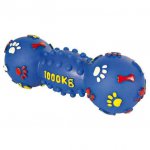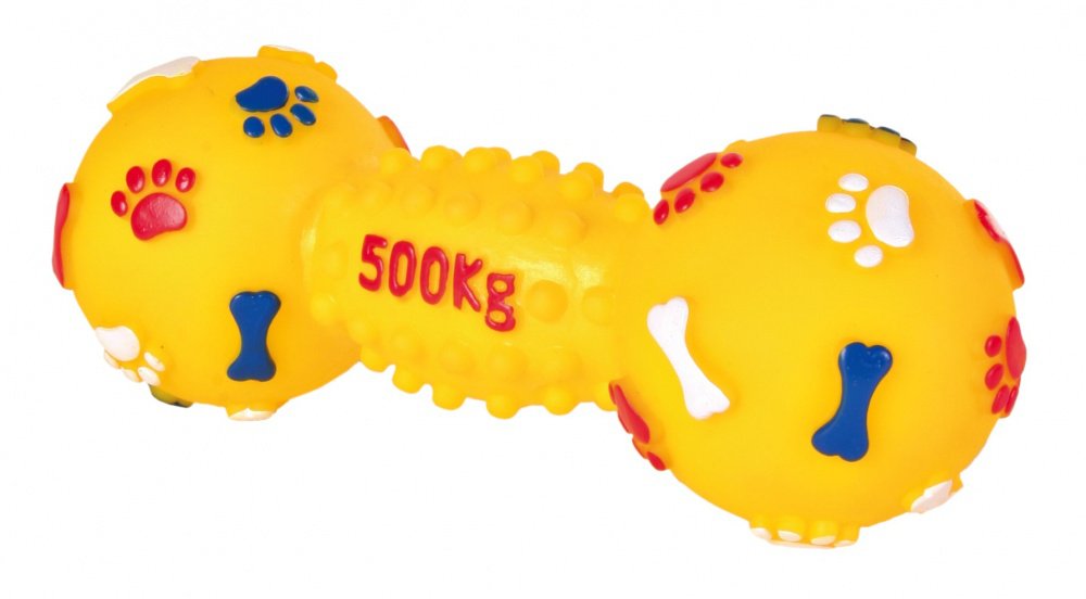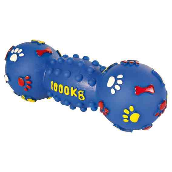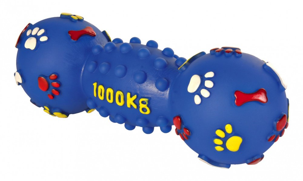 Miękka zabawka dla psa w kształcie hantla. Wykonana z bezpiecznego dla psa winylu. Podczas zabawy wydaje dźwięki zachęcające psa do dalszej aktywności. Zabawka łatwa do utrzymania w czystości. Idealna dla psów w każdym wieku. Ciekawy kolor i wzór w łapki.