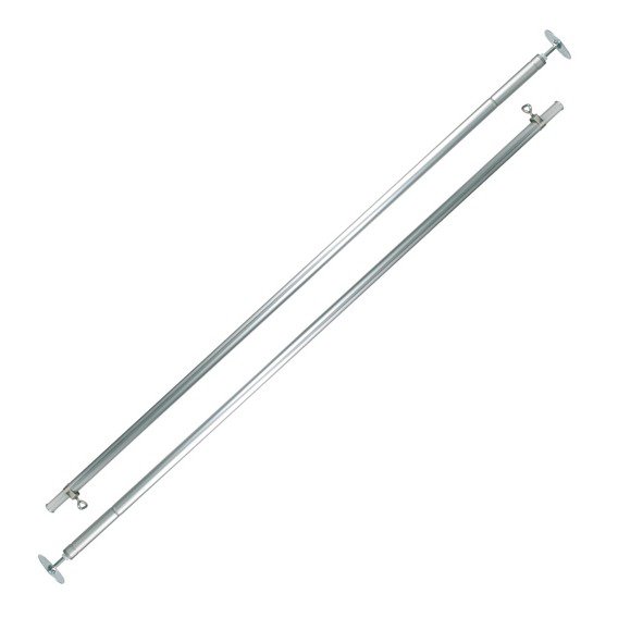 Zestaw zawiera: 3 elementowy słupek teleskopowy, aluminiowy, regulacja 1.28 - 3.20 m. 2 komplety mocowań do ściany.