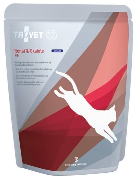 Trovet RID (Renal & Oxalate) to kompletna i zrównoważona karma dietetyczna, zaprojektowana specjalnie dla kotów cierpiących z powodu niewydolności nerek lub problemów związanych z kamieniami szczawianowymi.