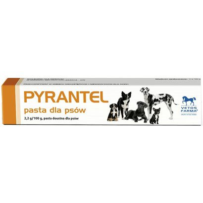 Dawkowanie i droga podania: Pyrantel – pasta dla psów jest przeznaczony do podawania doustnego przy pomocy dozownika lub po wymieszaniu z pokarmem w dawce 14-15 mg pyrantelu/kg mc. Pełna zawartość dozownika wystarcza na leczenie psa o masie 15 kg. Dozownik zaopatrzony jest w podziałkę, umożliwiającą podział jego objętości na 10 części, co oznacza, że jedna część wystarcza na odrobaczanie psa o masie 1,5 kg. Po raz pierwszy lek można podać szczeniętom po ukończeniu drugiego tygodnia życia.