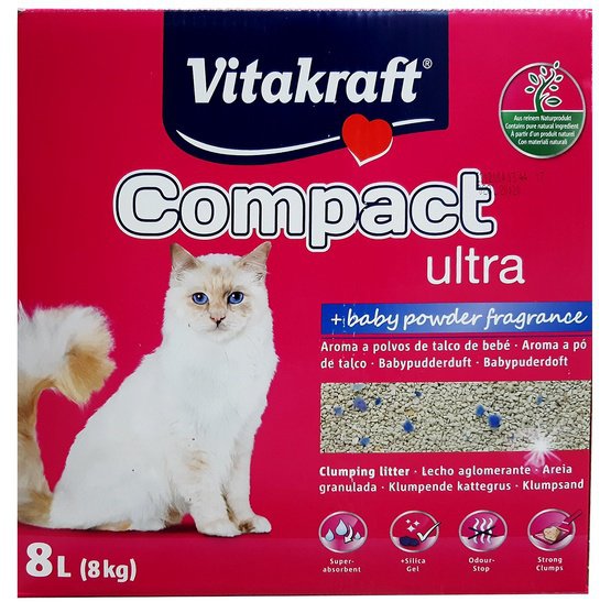 Żwirek dla kotów mający doskonałe właściwości absorbujące, dzięki czemu jest bardzo wydajny. Produkt na bazie minerałów i gliny naturalnej. Natychmiast wiąże płyn w grudki i absorbuje brzydki zapach. 4 kg żwirku Compact Ultra Plus odpowiada średnio 20 kg zwykłego żwirku.