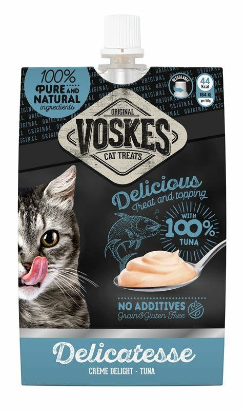 Voskes Creme Delight Tuna z kwasem Omega 3 to pyszny, miękki krem stworzony z najlepszych składników, dla uzyskania zdrowej i smacznej przekąski lub jako dodatek do jedzenia. Uzupełniająca karma dla kotów .
