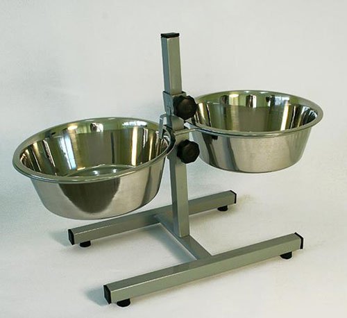 Komplet dwie miski + stojak wykonane ze stali nierdzewnej. Nóżki wyposażone są w gumowe nakładki, dzięki czemu zestaw nie ślizga się po podłodze. Dzięki regulacji wysokość misek można indywidualnie dopasować do wzrostu psa co ma duży wpływ na prawidłowe ułożenie kręgosłupa. Produkt jest bardzo stabilny. Wysoka jakość wykonania.