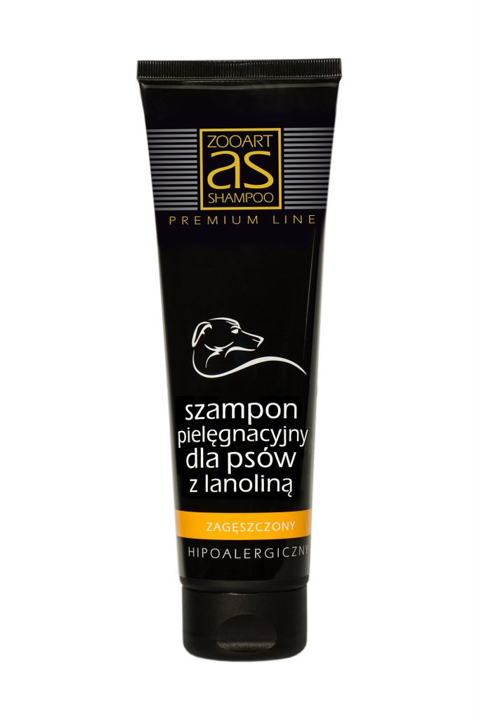 - Pielęgnacyjny szampon dla psów z lanoliną, przeznaczony dla psów o długiej sierści.